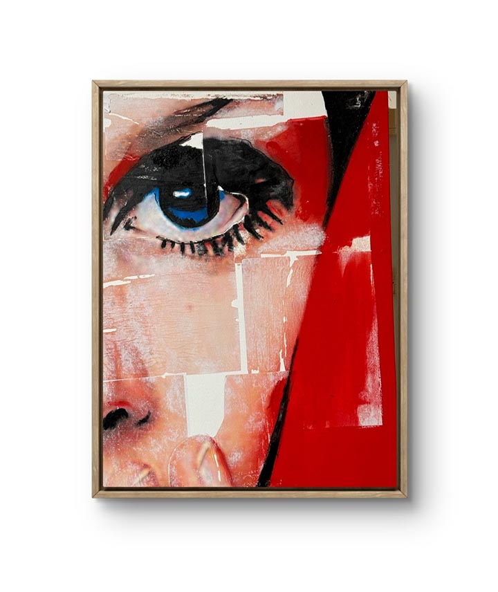 Inspired by the iconic fashion photography of Twiggy, L’Oeil Gauche delves into the fragmentation of identity, revealing the people we hide beneath the façade of the “perfect woman.” This bold, cropped perspective of the eye invites reflection on beauty, imperfection, and the layers of self. Each print is signed, numbered, and printed on archival-grade paper.